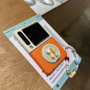蓝拼粉指环扣折叠屏手机壳