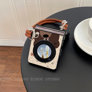 适用于努比亚Nubia Flip手机壳可爱咖啡小熊皮质nubiaflip2折叠屏mixflip2保护壳手提挂绳斜挎purax外壳新款