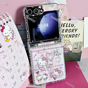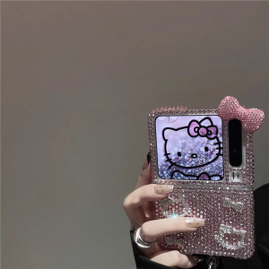 水钻kt猫蝴蝶结适用摩托罗拉razr4/50ultra折叠努比亚flip2手机壳OPPOfindN3手链vivoxflip女华为Novaflip潮