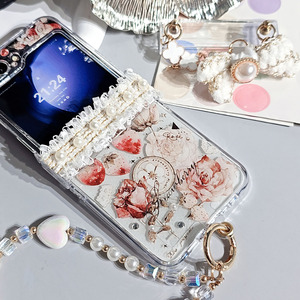 适用努比亚flip2折叠屏手机壳nubiaflip二代保护套filp25g水钻爱心5g透明贝壳纹nubia中兴NX732J女款网红手链