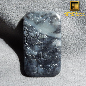 亏麻了方言品牌和田玉老坑料聚墨青花籽料山水牌挂件手把件h4