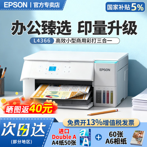 【自营】爱普生L4366墨仓式彩色无线多功能打印复印扫描自动双面办公