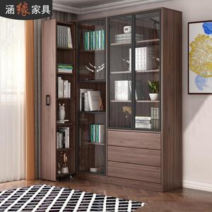 现代简约夹缝抽拉式书柜落地带门大容量书橱组合储物柜定制7F-015