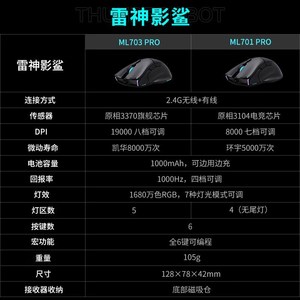 雷神 影鲨ML7 Pro双模无线 电竞鼠标宏编程可充电TypeC ML701Pro/